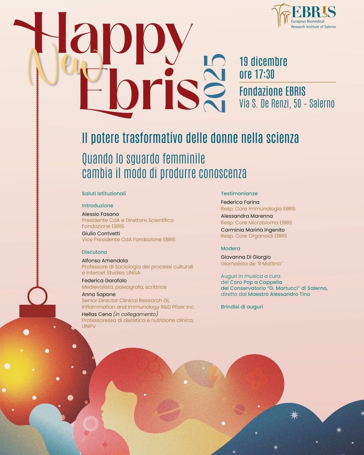 Torna l’appuntamento annuale di Happy New EBRIS, l’incontro promosso dalla Fondazione EBRIS – European Biomedical Research Institute of Salerno, pensato come momento di riflessione, confronto e augurio condiviso tra comunità scientifica, mondo culturale e territorio.