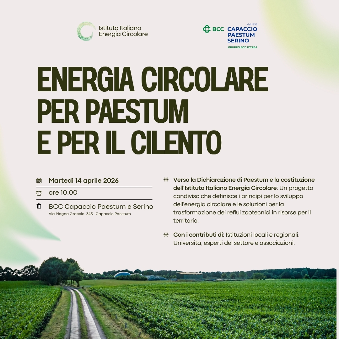 Martedì 14 aprile, alle ore 10:00, nella Sala Mucciolo della sede BCC Capaccio Paestum e Serino, si terrà un incontro dedicato al futuro sostenibile della Piana del Sele e del Cilento. Sarà l’inizio di un dialogo profondo tra territori, persone e possibilità. Questo appuntamento rappresenta il primo passo verso la creazione della “Dichiarazione di Paestum”, un documento che vuole tracciare un modello condiviso di sviluppo capace di rispettare la terra e valorizzare le risorse locali, intrecciando energia e agricoltura in un equilibrio nuovo. Al centro del confronto c’è una sfida reale, che riguarda da vicino il territorio: la gestione dei reflui bufalini. La crescita dell’allevamento ha portato con sé quantità sempre maggiori di materiali difficili da smaltire, mettendo sotto pressione l’ambiente, le acque e le stesse aziende agricole. Eppure, proprio qui si apre uno spiraglio di bellezza e innovazione. Attraverso la digestione anaerobica e la produzione di biometano, ciò che prima era un problema può diventare una risorsa preziosa: energia pulita e fertilità per la terra.